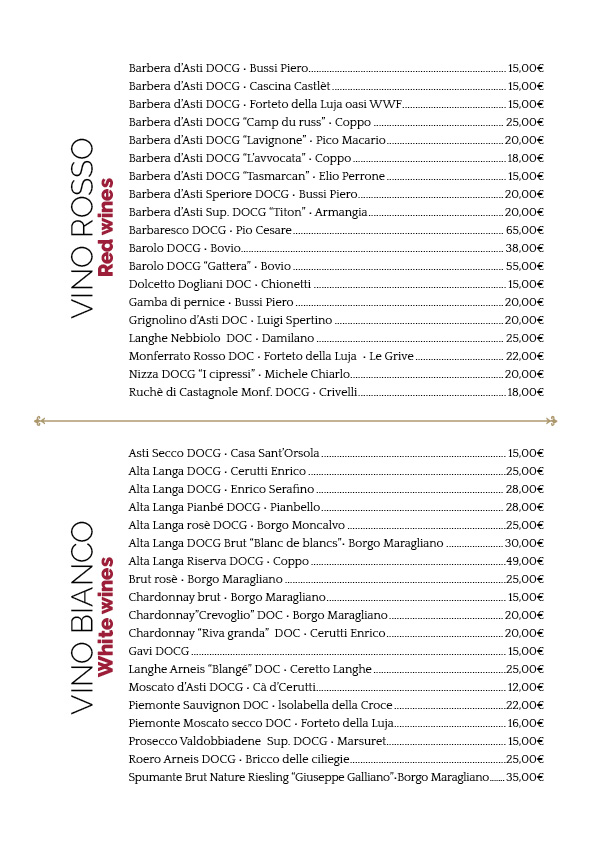 La bottega di Camilla Menu